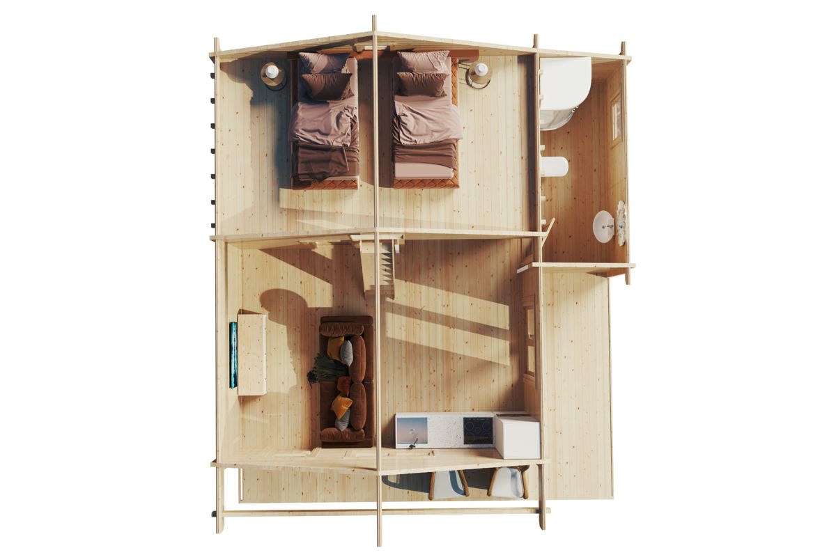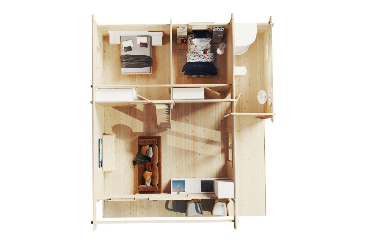 Holzhaus mit zwei Schlafzimmern und Schlafboden „Dallas” 55m² | 70mm | 7x7m